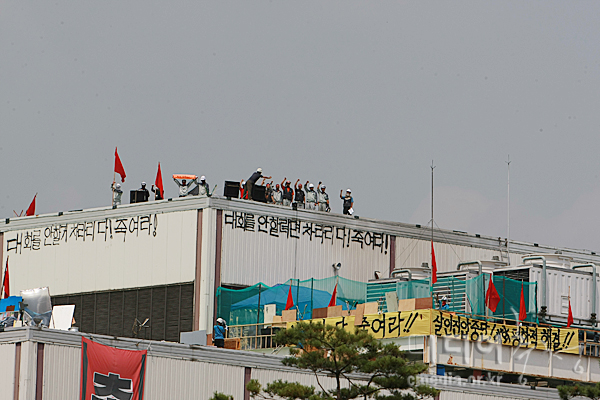 그러나, 회사측과 정부는 커다란 오판을 하고 있음을 분명히 밝힌다. 아무런 이유 없이 경제위기의 책임을, 부실경영의 책임을 다 떠안으며 “정리해고라는 살인”으로 내몰린 노동자들은 지금보다도 더한 회사측과 정부의 폭압에도 결코 흔들리지 않는다는 것을, 결코 물러서지 않는다는 것을 똑똑히 알아야 한다. 아니 이미 죽은 목슴이나 마찬가지이기에 현재 진행되고 있는 상황은 분노를 키우며 우리를 더욱 단력시켜 주고 있다. 물과 음식물 및 가스차단 등 고사작전에 밀려 접을 싸움이었으면 처음부터 시작도 하지 않았을 것이라는 것을 밝혀둔다. 이미 우리는 지혜와 행동을 모아 생활과 투쟁의 공통체를 만들어 나가고 있다. 우리는 분명 버텨나갈 강력한 열정과 만반의 준비가 되어 있다. 회사측 용역과 관리직 구사대, 정부 공권력의 계속되는 폭력적인 공장침탈 시도는 오직 파업대오를 무력진압함으로써만 문제를 해결할 수 있다고 하는, 저항할 수밖에 없는 노동자들을 “인간”으로 보지 않는 이성을 상실한 집단이 벌이는 최후의 발악이라고 판단한다.