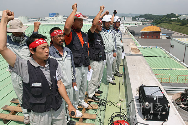 옥쇄파업 67일째인 27일 오전 11시, 도장공장 옥상에서 금속노조 쌍용차 지부가 기자회견을 가졌다.