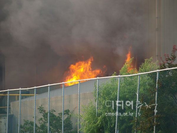 | 불타는 프레스 공장 /사진제공 사자후 | ||