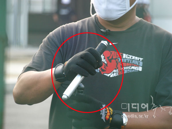 | 3단봉을 소지한 정체불명의 사람, 3단봉은 길이가 늘어난다. /사진제공 사자후 | ||