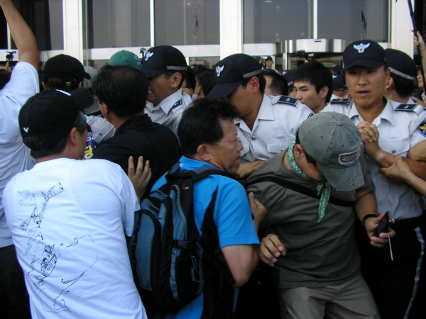 한편 파업 중인 언론노조 조합원 200여 명은 국회 본청 앞에서 경찰과 몸싸움을 벌이며 본회의장 진입을 시도했다. 이 과정에서 20여 명의 조합원이 연행됐다. 민주노총도 국회 앞 국민은행 본점 앞에서 국회로 진입을 시도하며 경찰과 충돌했다.
