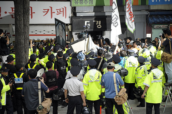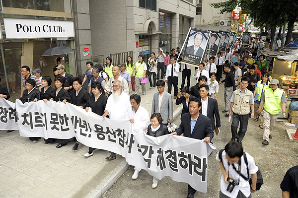 또 "외면하고 있는 단 한 사람 이명박 대통령에게 우리 남편이 우리 아버지가 어떻게 돌아가셨는지 사진을 공개하려고 한다"며 "수사기록 3천 쪽을 공개하고, 천성관 검찰총장 내정을 철회하고, 오세훈 시장이 재개발을 멈추지 않는다면 반년이 되는 날 다섯 분의 시신을 메고 청와대로 가겠다"고 선언했다.