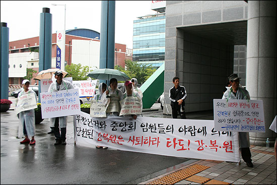 대책위는 “당시 공개투표(거수)로 진행된 선거에서 단독후보 등록에 대해 찬반 여부를 묻는 과정을 후보 지지를 묻는 것으로 해석하고 23:22의 결과로 강씨가 부당하게 당선됐다”면서 “이사 선임 역시 총회와 이사 회의를 거치지 않은 채 측근들을 지명직 이사로 선정했다”고 주장했다.