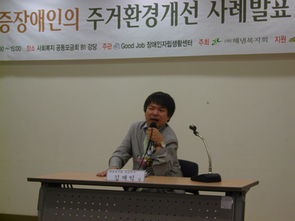 김재익 굿잡자립생활센터 소장은 장애인 주거환경 개선과 주거권 확보를 위한 새로운 패러다임을 제시해야 한다.”고 주장하며 “주거환경개선이 필요한 중증장애인의 욕구를 효과적으로 지원할 수 있도록 정부와 지방자치단체 중심의 서비스 전달체계를 마련해야하며 이를 제도화해야 한다. 또 외국선진국처럼 의료보험이나 정부와 지방자치단체에서 예산을 지원받을 수 있도록 정, 관, 민 협력기구를 구성해야 한다.”고 제안했다.