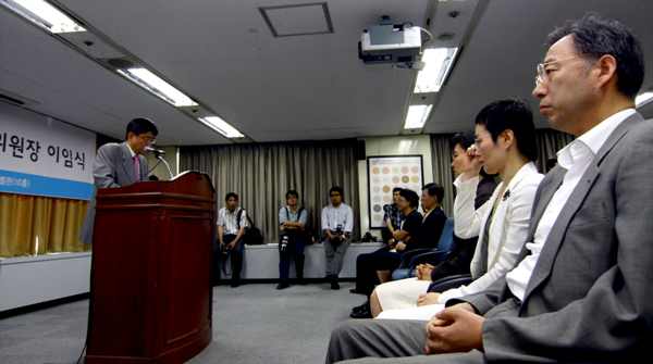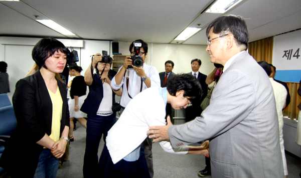 안경환 위원장은 8일 오전 11시 30분 국가인권위 인권교육센터에서 열린 이임식을 끝으로 불명예 퇴진을 자처했다. 이임식에 참석한 인권위 직원들 대부분은 비통한 표정으로 눈물을 감추지 못했으며, 안 위원장 역시 목메는 목소리로 위임사를 읽어 내려갔다.