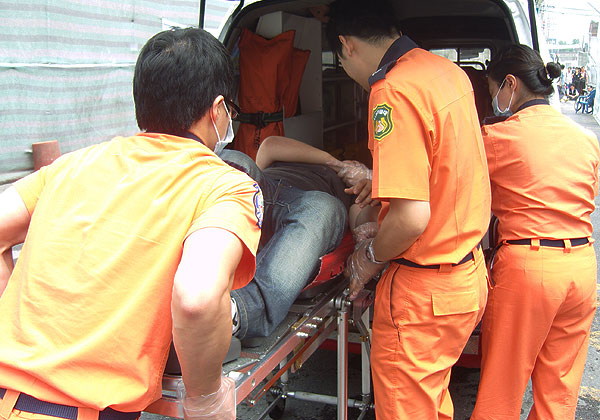 | ▲ 용역업체의 철거를 막다 실신한 여성이 응급 호송되고 있다. [출처: 용산범대위] | ||