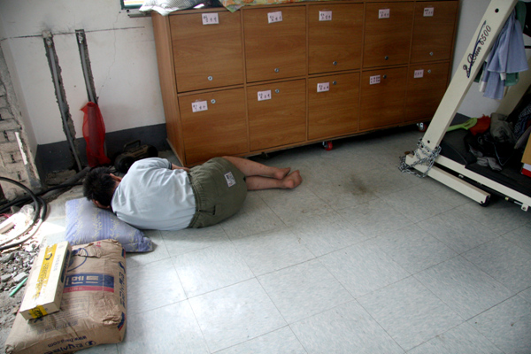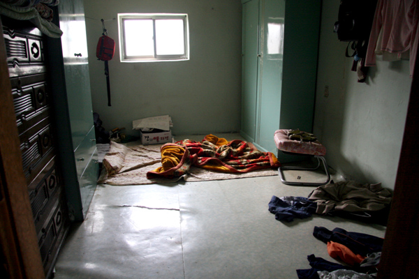 ▲몇달전까지만 하더라도 생활하던 구 건물 내에는 생활인들의 소지품이 이리저리 펼쳐져 있다. ⓒ전진호 기자