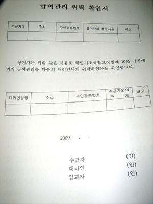 이런 의혹은 지적장애가 있는 기초생활수급권자들을 대상으로 한 ‘급여관리 위탁 확인서’에서 엿볼 수 있다.