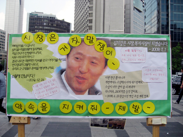 “시장님! 거짓말은 이제 그만, 약속을 지키세요.”