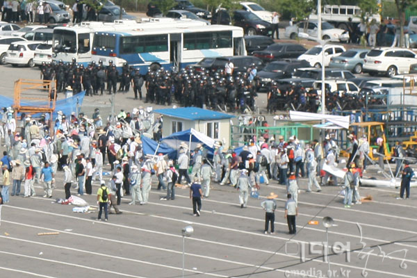 야만의 정글에서 무언들 치장해서 얘기하랴! ‘개도 밥그릇 건드리면 문다’고 했다. 어디 밥그릇만 빼앗은 것인가! 온통 퍼부어 대는 비난의 목소리들, 구사대와 용역, 이제는 경찰의 압박까지……. 착각했다. 관리자들은 정리해고에 저항해 봤자 며칠 못 버틸 것이라 생각했는가! 그래 대우차의 사례를 들먹이면서 준비한 것이 도장공장도 뺏긴 것인가, 공권력이 투입되면 금방 끝날 것이라 생각했을까? 과거의 노조 조직력을 생각했을 때 어차피 어울렁 더울렁 노사관계를 맺어온 과거처럼 갈 것이라 생각했을까?