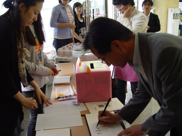 | ▲ 이날 창립기념행사에 참석한 최명희 강릉시장이 방명록에 글을 남기고 있다. ⓒ윤미선 기자 | ||