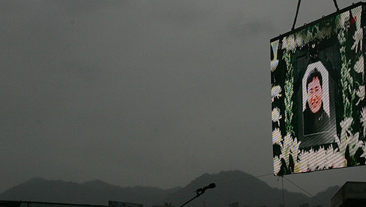 수백 개의 만장과 500여명의 운구행렬이 금남로 구)전남도청 앞에 도착한 것은 오후 5시30분경. 먹구름만 가득한 하늘에서 갑자기 소나기가 쏟아져 참석자들을 숙연하게 했다.