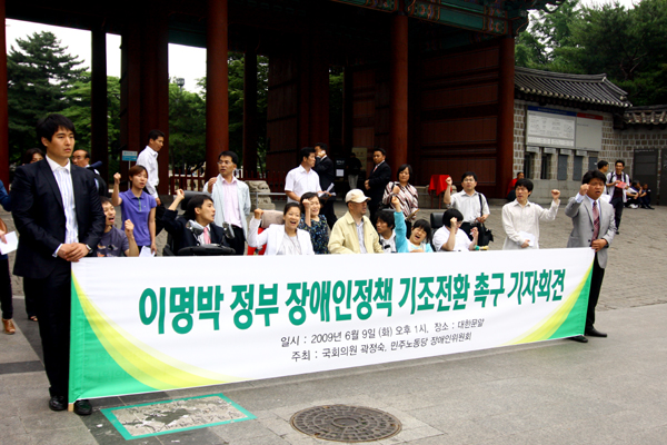 민주노동당 곽정숙 의원 민노당 장애인위원회, 이명박 정부 장애인정책 국정기조 전환 촉구 기자회견 개최