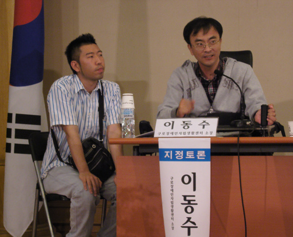 | ▲ 이동수 구로장애인자립생활센터 소장이 근로지원인과 함께 토론자로 참석해 근로지원서비스의 필요성에 대해 거듭 강조하고 있다. ⓒ윤미선 기자 | ||