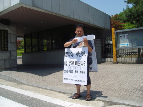 ▲ 서울지검 앞에서 지씨의 조속한 석방을 요구하며 1인시위를 벌이고 있는 모습