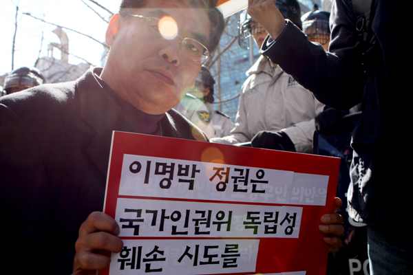 이어 국제민주연대 나현필 활동가는 “인권위에 대한 위상은 아시아 지역에서 금메달, 전세계적으로 16강 수준.”이라고 비유한 뒤 “박태환, 김연아 선수 등 국위선양에 대해 늘 강조하는 이명박 정부가 왜 전 세계적으로 가장 인정받고 있는 기구를 축소하려고 하는지 도저히 이해할 수 없다.”고 말했다.