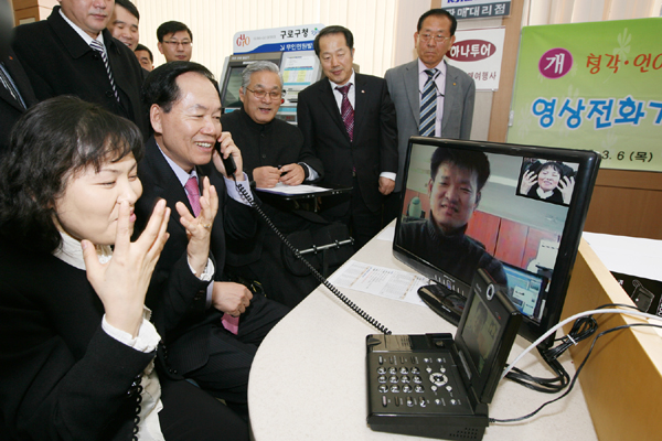 영상전화기 시스템은 청각 언어장애인이 민원업무를 위해 해당 관공서 또는 장애인 복지관을 방문시 영상전화기로 수화통역사에게 전화를 걸어 영상화면으로 통화할 수 있는 시스템으로 수화통역사는 이 통화내용을 민원처리 담당 공무원에게 실시간 음성으로 전달해 장애인의 민원사항을 처리토록 돕는다.