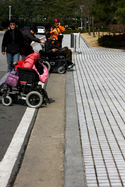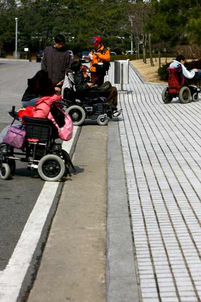 잘지어진 건물이기에 건물 내부로 들어갈 수 있는 경사로는 잘 설치돼 있지만 정작 경사로까지 갈 수 없어 누군가의 도움을 받아야 한다는 사실, 정말 아이러닐수 밖에 없다.