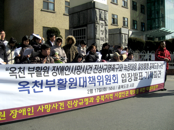 대책위는 기자회견에서 “진상조사를 형식적으로 진행하면 의무를 다한 것인가. 아니면 시간이 지나면 이번 사건과 의혹들이 자연스럽게 묻힐 것으로 믿는 것인가. 충북도청이 복지예산 중에서도 시설에 투영되는 막대한 예산에 대해 아무런 책임감을 느끼지 못하는 것인지 의구심이 든다.”고 규탄하고 “정신장애를 가진 가족을 좀 더 편히 지낼 수 있도록 시설로 보냈는데, 당사자는 영문도 모른 채 시체로 돌아왔다. 이처럼 분통터지는 일이 어디 있겠는가. 충북도청은 이번 부활원 사건이 축소, 은폐되지 않도록 대책위와 함께 철저히 진상조사를 하고, 이번 사건을 계기로 막대한 예산이 투영되는 시설에 대한 인권확보를 위한 근본적 대책을 수립해야 할 것.”이라고 촉구했다.