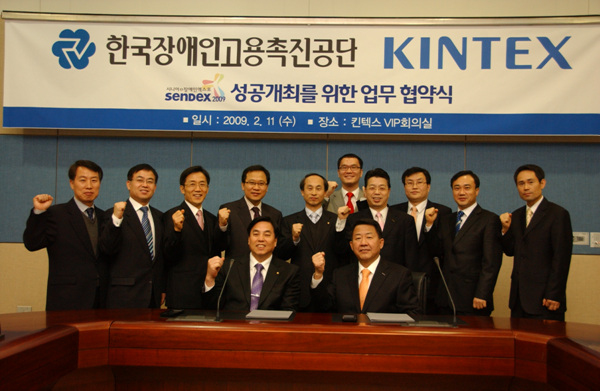 | ▲ 한국장애인고용촉진공단은 킨텍스와 11일 오전, 고양시 킨텍스 본부에서 교류협약을 체결했다. | ||