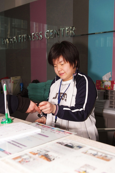 | ▲ ECC 체력단련실 물품관리직 이진경 씨. ⓒ채지민 기자 | ||