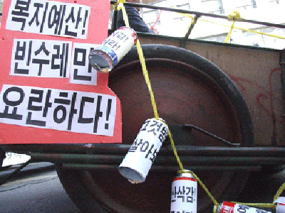 복지부 예산삭감을 규탄하는 내용의 퍼포먼스 일부(출처: 빈곤사회연대)