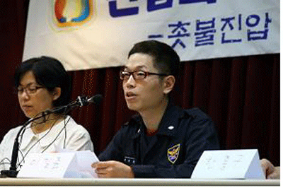 검찰과 법원에 가면 진실도 허위사실? 인터뷰 중인 이길준. 그는 촛불집회 진압당시 “내 인간성이 하얗게 타버린 것 같았다”고 말했다. 더구나 용산에서 경찰의 무모한 진압으로 벌어진 참사 탓에 온 나라가 충격에 빠진 시점에 이런 판결이 나왔다는게 기가 막힐 뿐이다. 판사는 도대체 어떤 생각을 하고 있는 걸까.