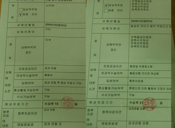 | 유영숙 씨는 전치 2주, 김영덕 씨는 전치 3주의 진단이 나왔다. | ||