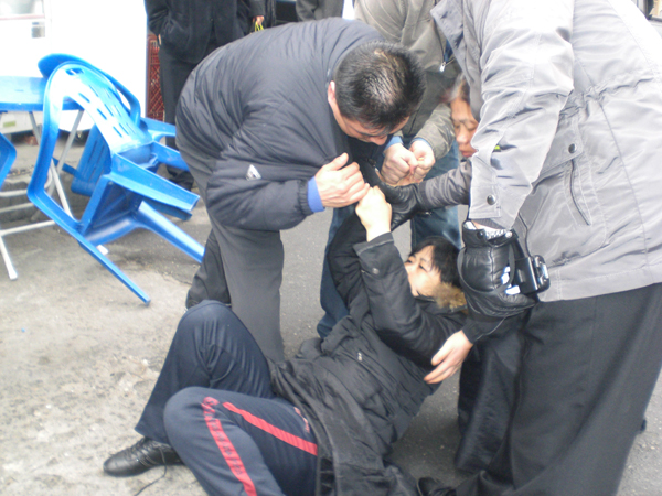 이 과정에 유족들이 사찰 활동을 하던 것으로 추정되는 용산경찰서 정보2계 이 모 경사의 팔을 잡고 막아섰다. 이 때 이 모 경사는 주먹으로 유영숙 씨의 얼굴을 가격하는 등 유족을 폭행해 유족 두 명이 부상을 입고 치료를 받고 있다.