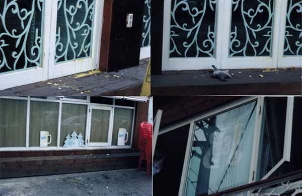 | 레아호프 입구에 죽은 비둘기, 계란 등을 던진 모습 | ||