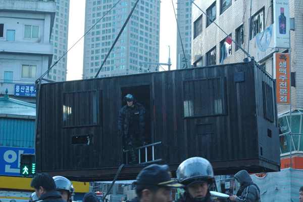 - 급기야, 오늘(20일) 새벽 5:30부터 살인적인 진압작전이 시작되었다. 불과 30여명을 연행하기 위하여 200명 이상의 특공대가 투입되었고 물대포와 쇠파이프를 동원하여 폭력적인 연행이 시작되었다. 경찰은 크레인과 컨테이너박스를 을 이용하여 특공대원을 투입하였고, 무차별적인 진압과정에서 화재가 발생하였다.