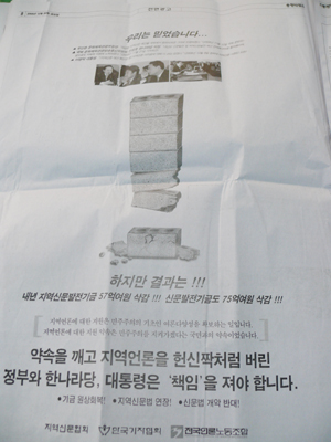 언론노조 총파업에 지역신문도 지면파업으로 화답