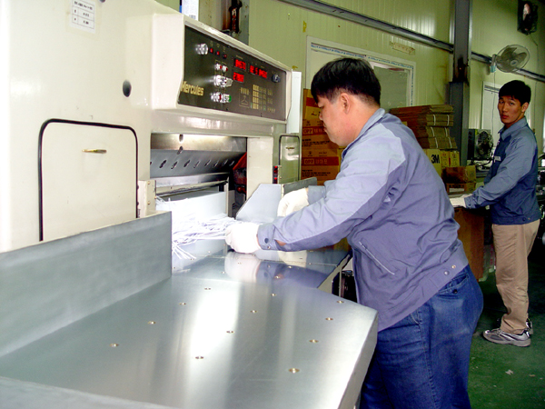 | ▲ 복사용지 생산 작업장에서 근무하고 있는 지적장애인 ⓒ함께걸음 자료사진 | ||