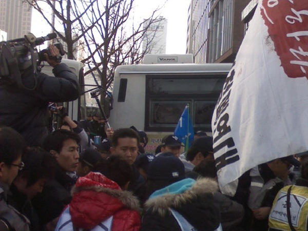| ▲ 세종로앞에서 장애인과 경찰이 대치중이다 ⓒ전진호 기자 | ||