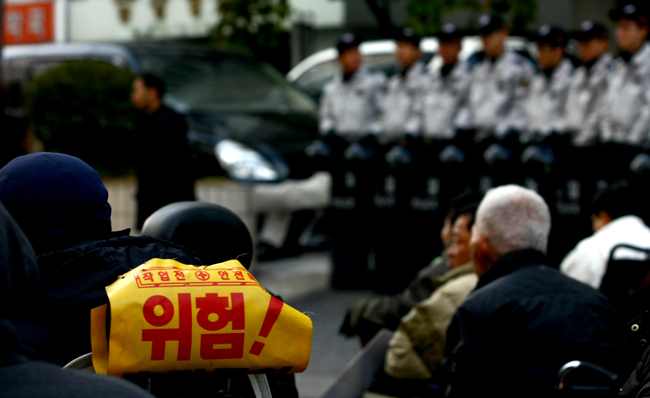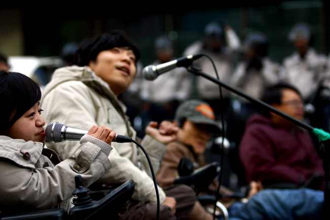전국장애인차별철폐연대 박경석 집행위원장은 “매번 똑같은 투쟁을 수년간 지속해오니 지겨울 수도 있다. 하지만 우리가 투쟁하는 이유는 장애인이 지역사회에서 인간답게 살아가기 위한 최소한의 것인 이동권, 활동보조서비스, 교육권 등을 요구하는 거고, 이명박 시대에 접어들어서는 오히려 암울한 과거로 회귀하고 있다.”고 주장했다.