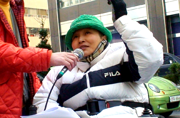 저는 저만을 위해서만이 아니라 앞으로 여러분들과 2세대를 위해 열심히 투쟁하겠습니다. 저는 이번 국회에서 한나라당 의원들이 중증장애인들이 지역사회에서 살아가기 위해 너무나 절실하게 필요한 활동보조예산을 삭감해버리지 않기를 바랍니다.