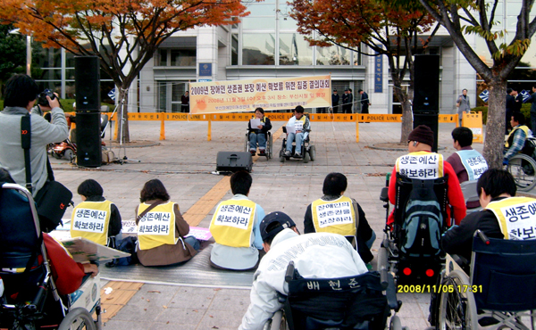 이들 단체는 “장애인이 사회로부터 배제되거나 동정과 시혜의 대상이 아닌 지역사회에서 살아가기 위해서는 활동보조인 제도 등이 제대로 시행되어야함에도 불구하고 이명박 정부는 복지예산을 줄이거나 동결하고자 하는 시도를 계속하고 있으며, 각 지자체들은 이런 분위기에 편승하려 하고 있다.”며 “이동권 확보 등을 위해 부산시가 스스로 세운 최소한의 예산만이라도 분명하게 지킬 것을 요구하며 투쟁에 나섰다.”고 밝혔다.