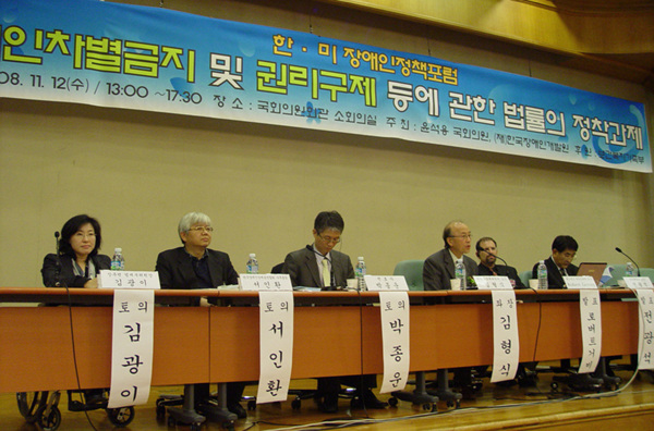 미국 장애인법(ADA : American with Disability Act)의 운용사례를 중심으로 진행되는 이번 포럼은 미국 위스콘신대학교 재활심리 및 특수교육학과 교수인 로버트 거비 박사를 비롯해 전광석 연세대 법학과 교수, 박종운 변호사, 김광이 장애인차별금지추진연대(이하 장추련) 법제위원, 서인환 한국장애인단체총연합회 사무총장 등이 패널로 참가했다.