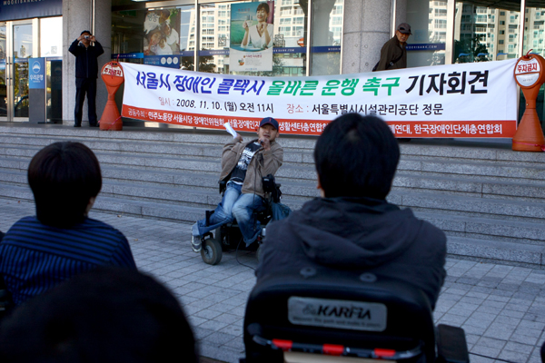 민노당 등 장애인 단체, 반인권적인 장애인콜택시 운영 개선안 철회요구 기자회견 개최