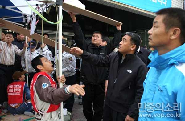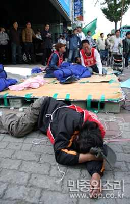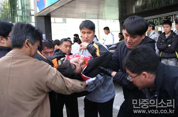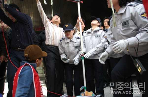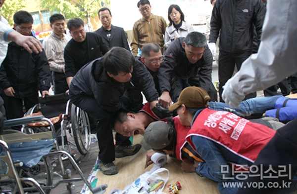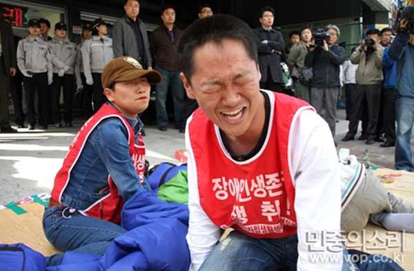 | 천막철거에 저항하다 제압당하는 장애인 | ||