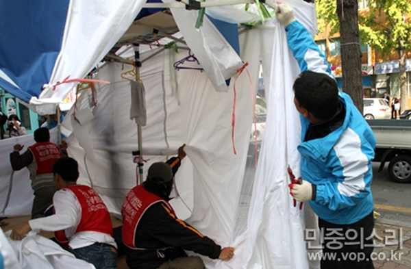 | 강제철거 당하는 장애인 천막농성장 | ||