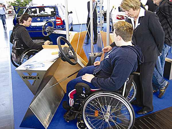 장애인을 위한 자동차 장비들을 시험해 보고 있는 독일 장애인 ⓒ김희영