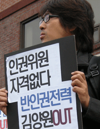 ▲ 10월 22일 청와대 앞에서 김양원 씨를 국가인권위원으로 인선한 청와대를 규탄하는 인권활동가들