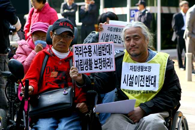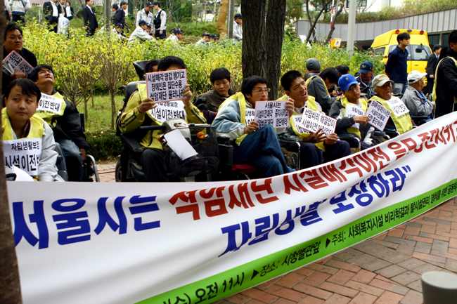 박경석 전국장애인차별철폐연대 집행위원장은 “석암재단이 우리의 주인인가? 무슨 권리로 우리 삶의 권리를 이용해 이익을 챙기는가?”라고 강하게 비난하며 “장애인을 보호한다는 명목으로 장애인을 외진 곳으로 내몰아 수백억을 챙기려는 것도 억울하지만, 시설 이전이 불가피하다면 그 돈으로 지역사회에 아파트를 지어 장애인들에게 공급하도록 서울시에 요청하겠다. 서울시는 장애인들의 자립생활을 보장하도록 주택 등을 지원하라.”고 목소리를 높였다.