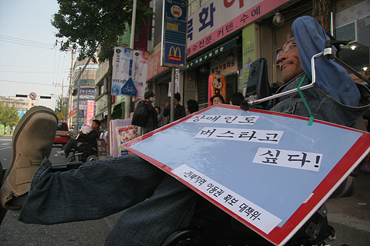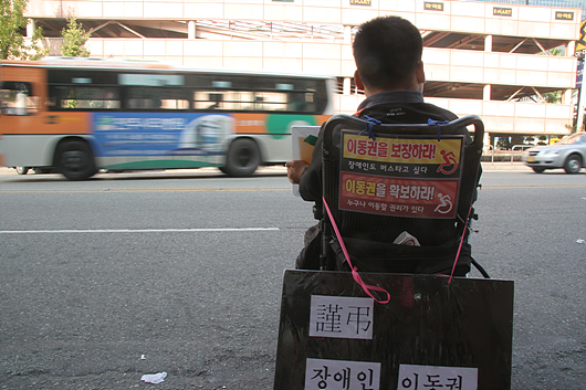 그는 또 “장애인을 태우지 않고 간 버스들은 모두 승차거부”라며 “사진 찍어 고발하면 대당 30~50만원의 벌금을 내야 하는 일이다”고 말했다.
