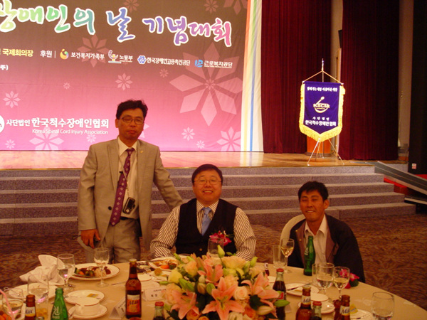| ▲ 2008 자랑스러운 척수장애인으로 선정된 박인규(중간 ,50세, 충남장애인복지정보화협회 회장)씨 | ||