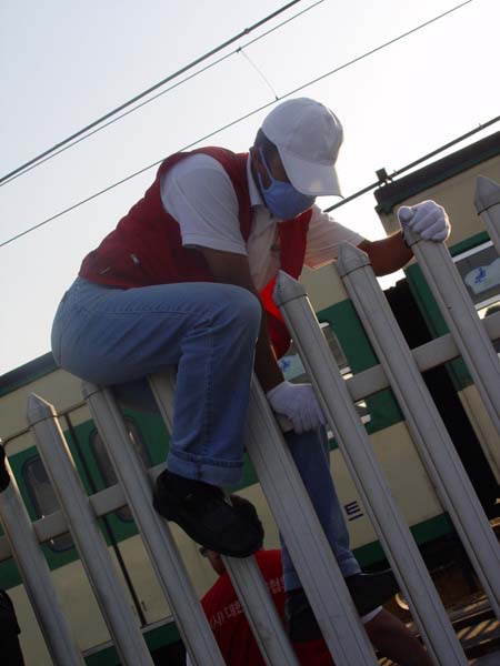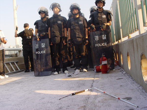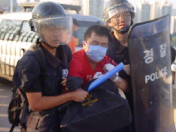 현재 점거 농성을 벌이던 회원 20여명은 지하철 선로에 뛰어들어 시너를 뿌리고 불을 붙였으나, 이를 막기 위해 소화기를 뿌리며 투입된 전경들에 의해 5분만에 전원 연행됐다.