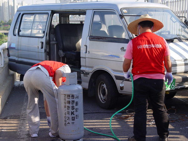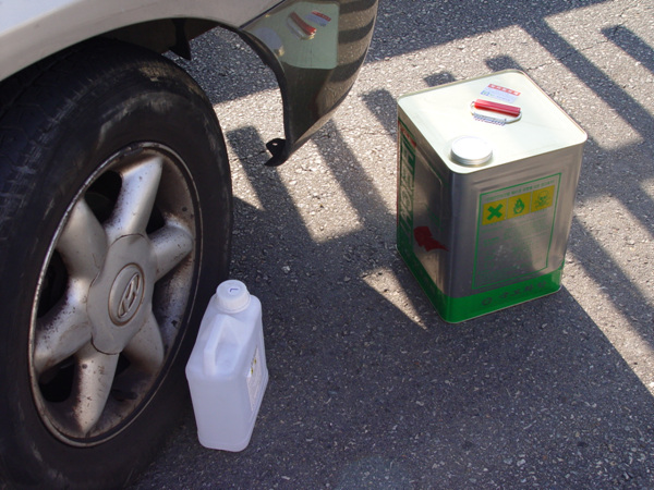 | ▲ 봉고차량 앞에 놓여진 신나통들. ⓒ윤미선기자 | ||