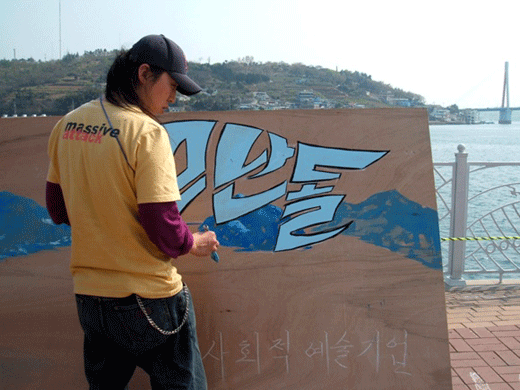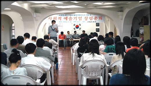 | 벽화사업, 축제, 공연, 스토리텔링 등 다양한 영역에서 활동을 전개한 사회적예술기업은 2007년 당시 대표(한길우)의 공금유용관련 입건으로 인해 어려운 처지를 겪고 있다. 사진은 유네스코 아시아청년문화제 활동장면. | ||
