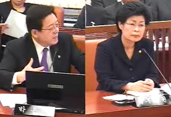 | ▲ 박은수의원이 전재희장관에게 대정부 질문을 하고 있다. | ||